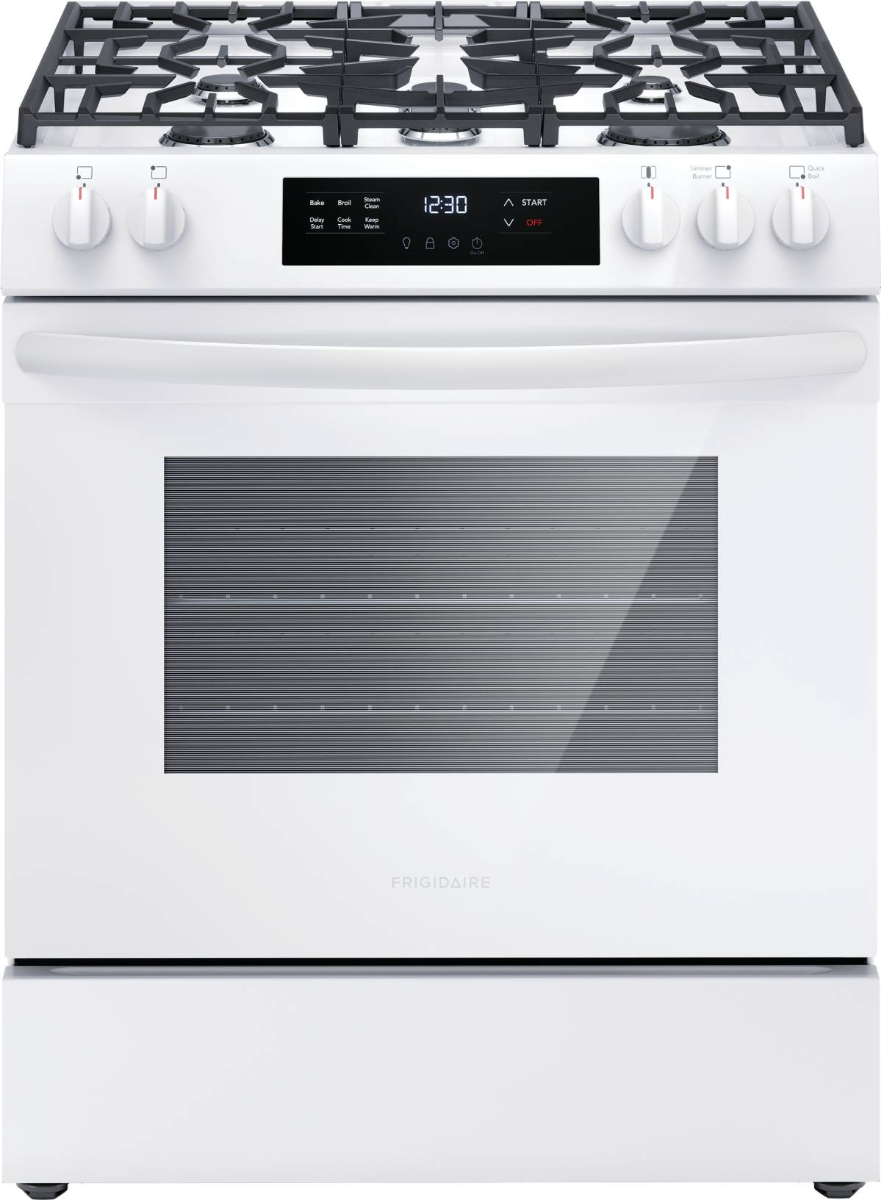 The Frigidaire 30'' Front Control Freestanding Gas Range with Quick Boil allows you to experience faster boil times with the 18,000 BTU Quick Boil burner. Plus, our flexible five burner cooktop was designed to fit all your cooking needs. For easier cleanup, our Steam Clean cycle provides a quick cleaning.Read More