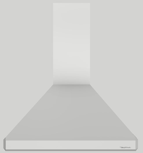 Click on the models for a list of our base model numbers for standard sizes; simply select the model you need, and then specify the finish (painted or stainless steel.) Not available in real brass, real copper, or hammered copper. Recommended mounting height is 24" from the cooking surface. Shown with matching wall mount duct cover (sold separately), available in standard sizes for 7', 8', and 9' ceiling heights or in custom sizes. All Vent-A-Hood products are suitable for use in damp locations (outdoor applications such as a covered patio) when installed in a GFCI protected branch circuit.
